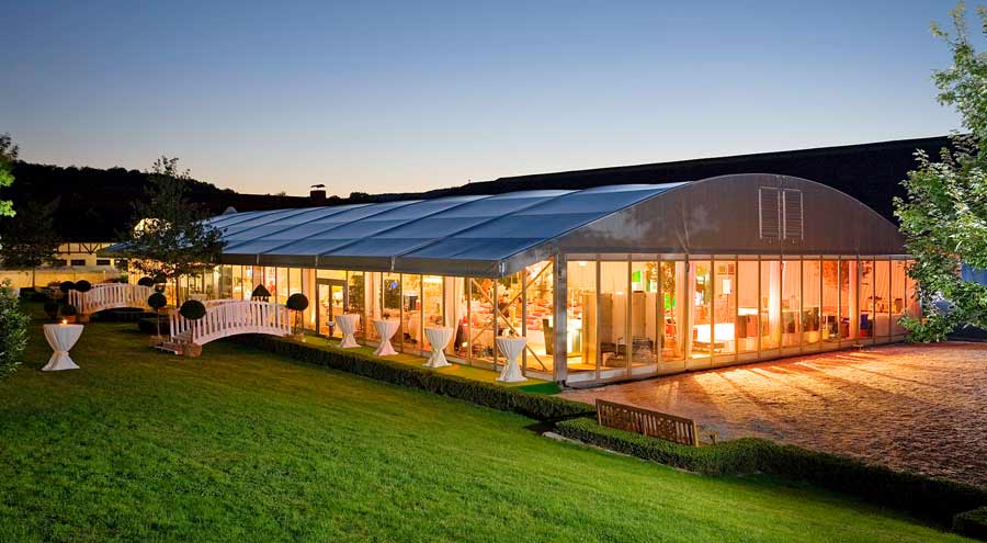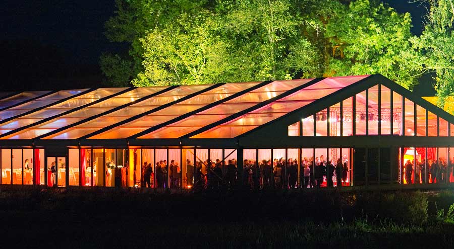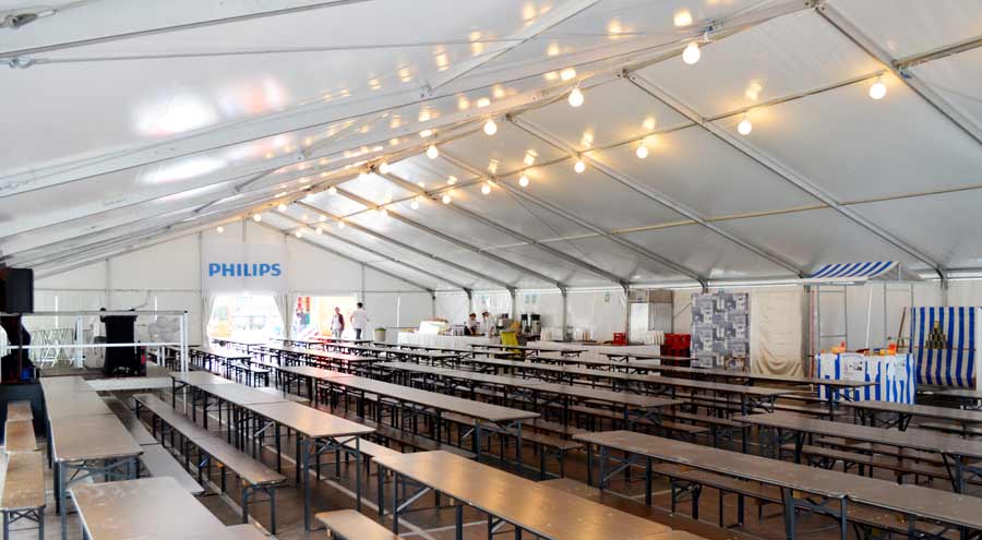Durch die Kombination verschiedener Lichtquellen lassen sich unterschiedliche Zonen im Zelt schaffen – von hell ausgeleuchteten Servicebereichen bis hin zu stimmungsvollen Lounge- oder Tanzflächen.