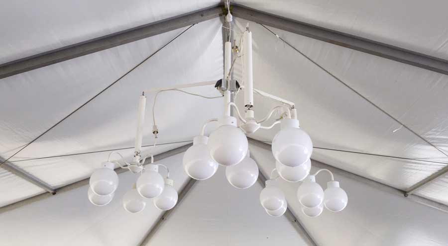 Der klassische Kronleuchter verleiht Ihrem Zelt eine elegante, fast schon festsaalartige Wirkung. Er ist besonders beliebt bei gehobenen Events und schafft einen stilvollen Blickfang im Innenraum.
