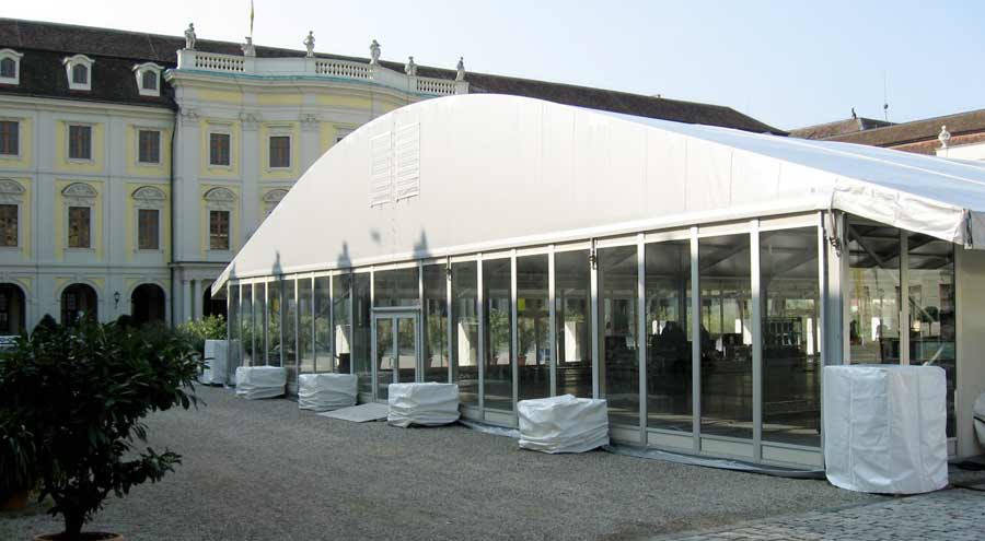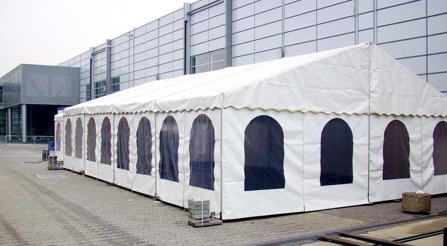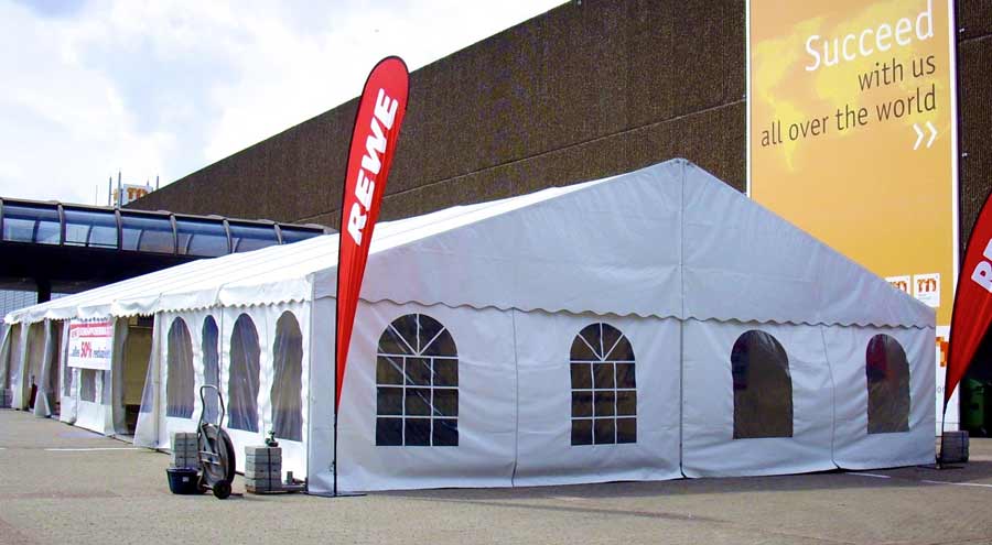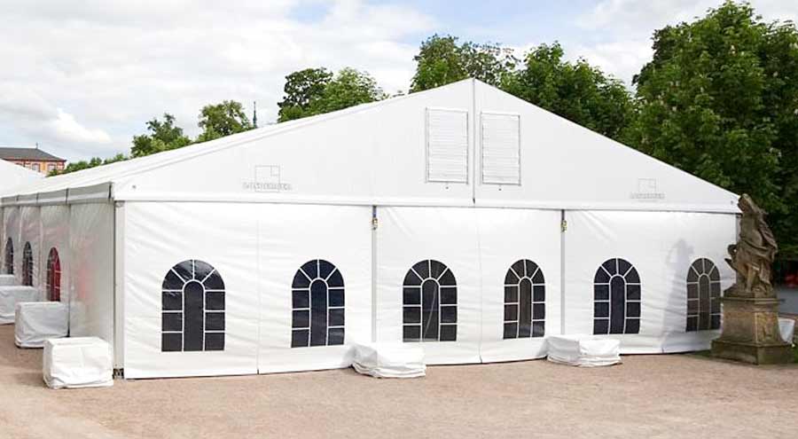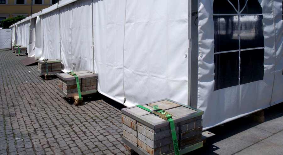 Je nach Zelttyp, Größe und Standortbedingungen kommen unterschiedliche Ballastierungssysteme zum Einsatz: