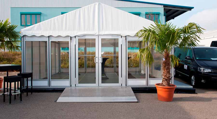Kleinzelte haben Spannweiten zwischen 4 und 15 Metern, bei einer Standard-Traufhöhe von 2,30 m.